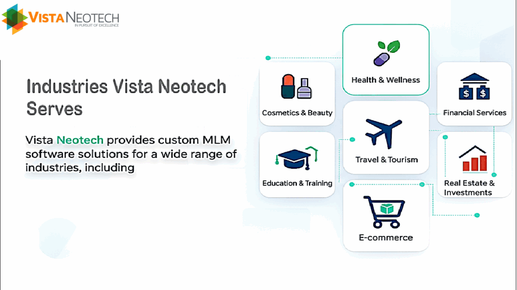 Vista Neotech provides custom MLM software solutions for a wide range of industries, including: